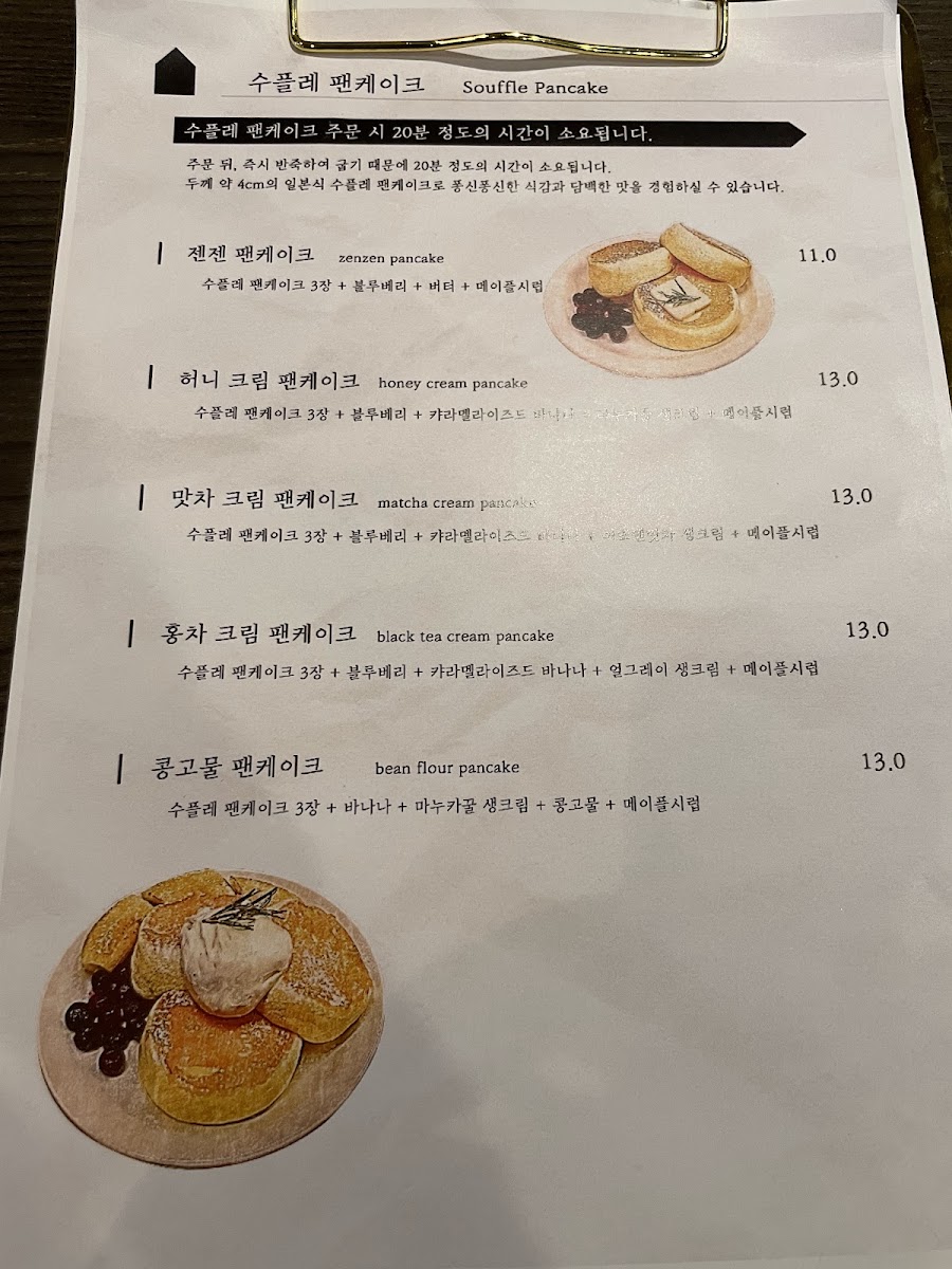 Jenzen Bojeongdong Cafe Street Branch Menu